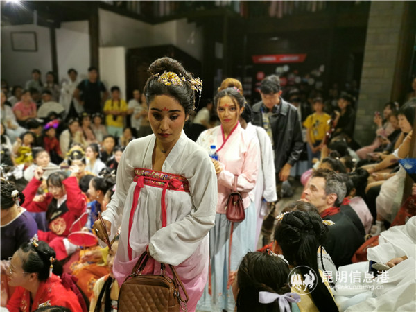 This event was sponsored by Kunming Information Hub, and co-organized by Yunnan Han Chinese Clothing Association, Nanqiang Street No. 88 Theater, Kunming Federation of Literary and Art Circles and Kunming Institute of Literature and Art. With the aim of presenting Chinese culture and customs to foreigners, the event tried to remind people that the Qixi Festival is not only a Chinese Valentine’s Day, but also a festival for girls to ask for light hands.