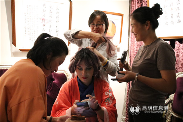14 foreigners, with the help of the members of Yunnan Han Chinese Clothing Association, put on the Han Chinese Clothing (Hanfu). Four girls, Ilef Ben Abbes, Salma Dabbar, and Asma Mestiri (from Tunisia) and Joelle Abro (from Ivory Coast) tucked up their hair with Chinese hairpins. They took selfies and had facetime with families when dressed up.“Just like a traditional Chinese woman now.”Ilef said.