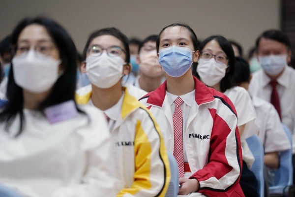 Students from Po Leung Kuk Ho Yuk Ching College listen to a lecture given by space scientists in Hong Kong, south China, June 25, 2021. (Xinhua/Wang Shen)