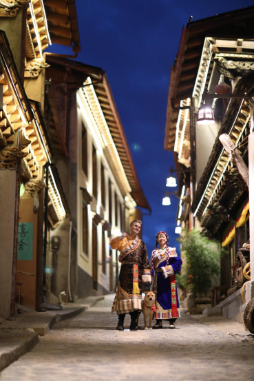 "We met at work. It could be said that we fell in love at second sight." Andre said with a smile. He and his wife would travel together. When they went to the "Fanrenguzhai" in Ninglang County, they wore Pumi costumes.