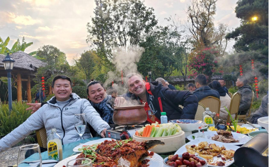 In the short video, Andre summed up the process of pig feast with his own understanding: encircling, driving, wrestling, showering, bathing, cutting, preparing dishes, cooking, weathering, and eating. "Pig feast is not only a delicacy, but also a reflection of the passion of Yunnan people." By participating in the busy and authentic Yunnan pig feast, Andre was deeply impressed by the villagers' hospitality, understood the significance of the New Year and felt the happiness of reunion.