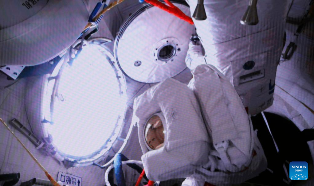 The Shenzhou-15 taikonauts on board the orbiting Chinese Tiangong space station completed their first spacewalk at 12:16 a.m. (Beijing Time) on Friday, according to the China Manned Space Agency. (Xinhua/Liu Fang)