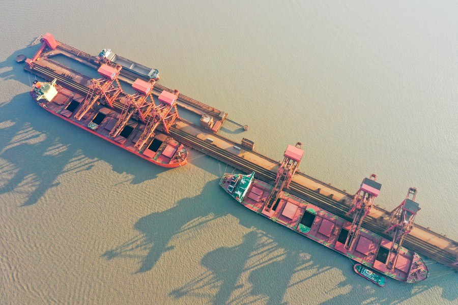 This aerial photo taken on Jan. 30, 2023 shows a view of the Ningbo-Zhoushan port in east China's Zhejiang Province.(Photo by Jiang Xiaodong/Xinhua)