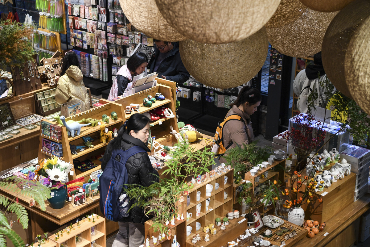 People shop at the Beicang Cultural and Creative Block in Jiangbei district of Southwest China's Chongqing, Feb 15, 2024. [Photo/Xinhua]