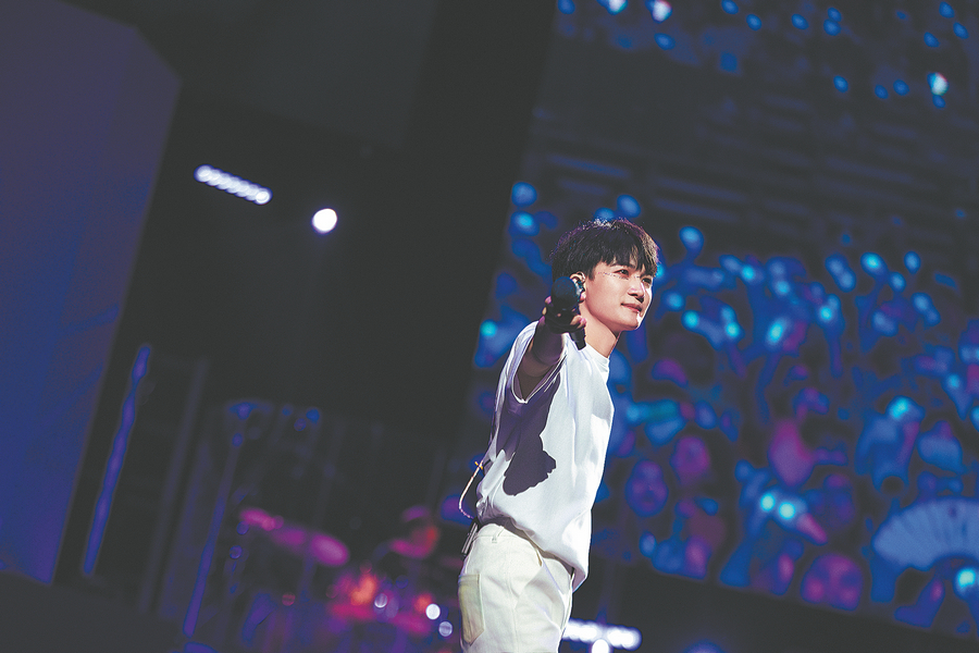 Zhou Shen performing during a concert last year. Born in a mountain village in Hunan province, he has become one of the most popular singers in the country. CHINA DAILY