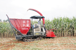 9月17日-18日,昆明市青貯玉米機(jī)械收獲現(xiàn)場(chǎng)會(huì)在石林縣石林鎮(zhèn)老挖村舉行。當(dāng)天,一臺(tái)9QZ-2900B自走式青貯飼料收獲機(jī),現(xiàn)場(chǎng)演示了翻犁、旋耕整地、開(kāi)溝施肥穴播、田間管理、機(jī)械收獲等作業(yè),贏得了村民的青睞。這臺(tái)自走式青貯飼料收獲機(jī)每小時(shí)收割量可達(dá)36噸,大大提高了效率。一位村民介紹,采用該機(jī)械作業(yè),每畝可產(chǎn)青貯飼料玉米4935公斤,比傳統(tǒng)玉米多增收500多元;每頭牛可降低飼料成本700多元。通過(guò)實(shí)施青貯飼料玉米全程機(jī)械化,每戶平均增收7660元。
