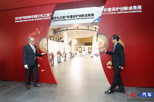 華晨寶馬汽車有限公司總裁兼首席執(zhí)行官 魏嵐德博士(Dr. Johann Wieland)與清華大學(xué)美術(shù)學(xué)院黨委書記 馬賽教授 共同為2018“BMW中國(guó)文化之旅”非遺保護(hù)創(chuàng)新成果展揭幕。