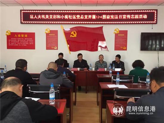 昆明信息港訊 記者張薇 2018年12月4日為全國(guó)憲法日,關(guān)上街道小街社區(qū)黨總支聯(lián)合官渡區(qū)人大機(jī)關(guān)黨支部于12月5日,在社區(qū)舉辦區(qū)人大機(jī)關(guān)黨支部、小街社區(qū)黨總支共建聯(lián)評(píng)暨憲法學(xué)習(xí)講座?;顒?dòng)旨在深入開(kāi)展新憲法學(xué)習(xí)宣傳活動(dòng),教育引導(dǎo)社區(qū)人員尊崇憲法、學(xué)習(xí)憲法、遵守憲法,不斷提高學(xué)習(xí)憲法知識(shí)。