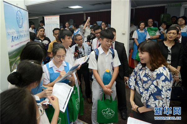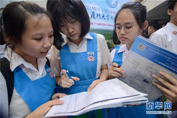 3月6日,在馬來西亞吉隆坡,學(xué)生在“2019年留華高等教育展”上參觀。馬來西亞教育部副部長(zhǎng)張念群6日在吉隆坡出席“2019年留華高等教育展”時(shí)表示,希望更多馬來西亞學(xué)生到中國(guó)留學(xué)深造,成為能夠幫助國(guó)家建設(shè)的人才。新華社發(fā)(張紋綜/攝)