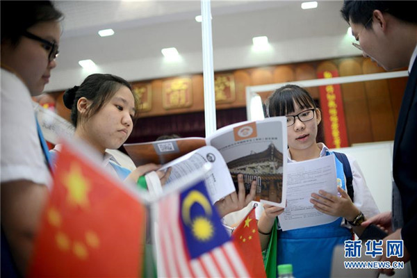 3月6日,在馬來西亞吉隆坡,馬來西亞學(xué)生在“2019年留華高等教育展”上與中國(guó)高校代表交流。馬來西亞教育部副部長(zhǎng)張念群6日在吉隆坡出席“2019年留華高等教育展”時(shí)表示,希望更多馬來西亞學(xué)生到中國(guó)留學(xué)深造,成為能夠幫助國(guó)家建設(shè)的人才。新華社發(fā)(張紋綜/攝)