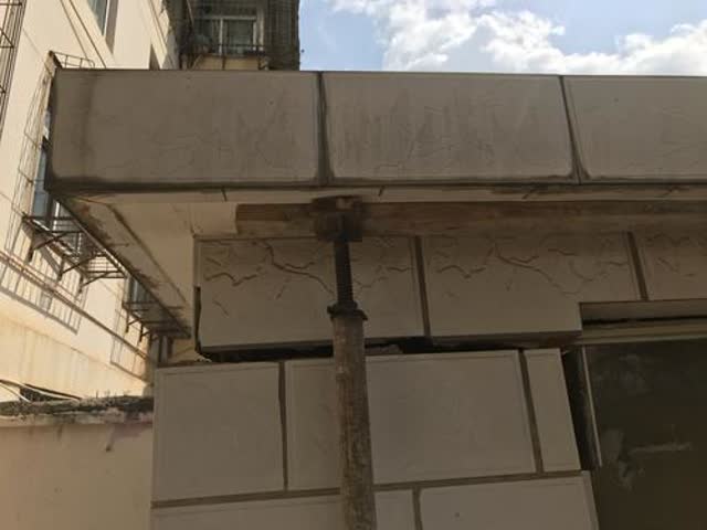 “自從旁邊的樓盤開始施工挖地基,裂縫就出現(xiàn)了,這個樓盤的施工工地距離我們這個小區(qū)就一墻之隔,地基幾乎是沿著我們小區(qū)的圍墻挖的,而且挖得也比較深,現(xiàn)在這幾棟房子都傾斜了?!奔易?6棟的景先生告訴記者,施工樓盤的開發(fā)商在事情發(fā)生后安排工作人員用瀝青、水泥砂漿等進行了表面的補救,同時也在兩個小區(qū)的連接處用重達12噸一根的大鋼管進行支撐,但都沒有達到預期的效果。