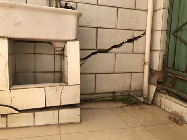 最為夸張的是,嚴阿姨家里的地板磚因為地基下陷變形,被生生拉開了一個近5厘米的口子。在嚴阿姨家里,開裂、傾斜、裂縫隨處可見,“現(xiàn)在住在這個房子里真的是膽戰(zhàn)心驚的,不知道哪天就倒掉了,這跟危房有什么區(qū)別?”