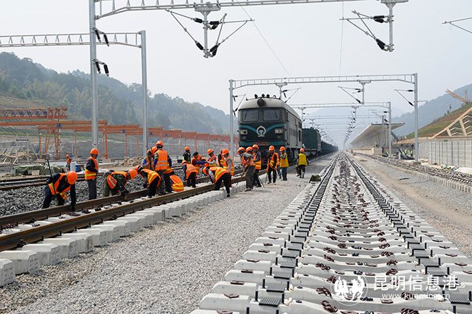 昆明信息港訊 記者上官艷君 4月1日,隨著中鐵一局鋪架機將500米長的鋼軌緩緩鋪設到寧洱站,中老鐵路中國段在建玉溪至磨憨鐵路鋪軌任務過半,為今年底開通運營奠定了基礎。