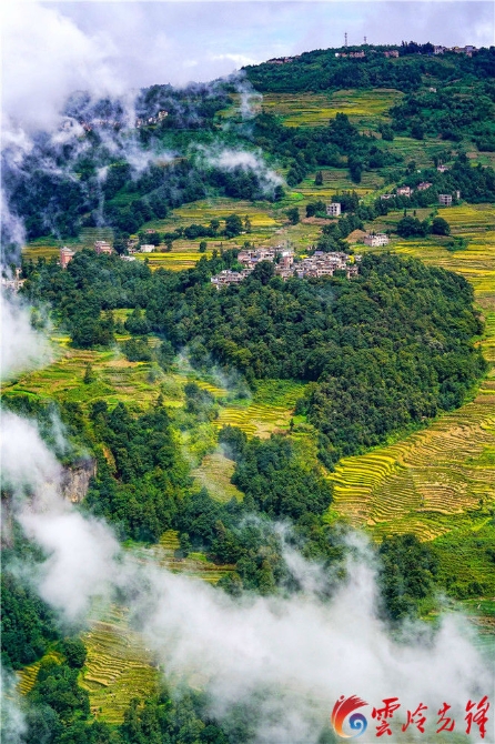 如今,遠(yuǎn)遠(yuǎn)望去,梯田上方的云端,白色的霧氣和綠色的森林交相輝映,構(gòu)成了神奇瑰麗的景觀。
