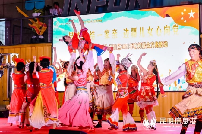 昆明信息港訊 記者張琪蕊 9月30日,由云南省文化和旅游廳主辦,云南省文化館、昆明市文化和旅游局、西山區(qū)文化和旅游局承辦,昆明市文化館、西山區(qū)文化館、云紡商業(yè)集團(tuán)執(zhí)行的“民族團(tuán)結(jié)一家親 邊疆兒女心向黨”2021夜間群眾文化演出活動(dòng)在西山區(qū)云紡廣場(chǎng)舉行。