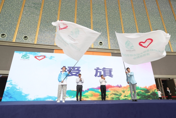 云南省生態(tài)環(huán)境廳黨組書記、廳長,COP15云南省籌備辦主任馬永福同志;COP15國家執(zhí)委辦副主任劉寧同志;共青團云南省委書記唐源同志;COP15云南省籌備辦常務(wù)副主任崔質(zhì)濤同志;共青團云南省委副書記、COP15云南省籌備辦志愿者工作部部長趙攀峰同志出席了儀式。13個志愿者工作站的540名展區(qū)志愿者、300名城市核心志愿者代表參加儀式,儀式由團省委副書記周懷君主持。