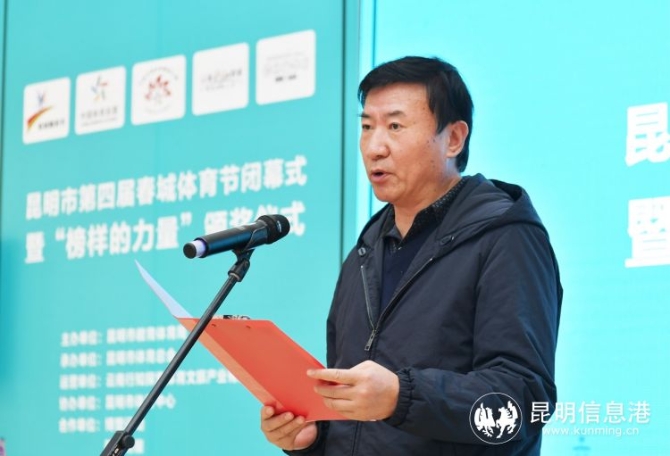 閉幕式最后,昆明市教育體育局副局長孫紅昆致辭。他表示,昆明市教體局將以此為全新起點,加強體育基礎(chǔ)設(shè)施建設(shè),創(chuàng)新活動開展形式,深入開展全民健身活動,不斷增強廣大市民的健康素質(zhì),提升全市健康水平。同時,號召全市市民:“堅持每天鍛煉1小時,成為自己健康的主人。積極帶動家人、同事、朋友參與到健身運動中,促進‘運動鏈’和‘健康鏈’的形成?!?/p>