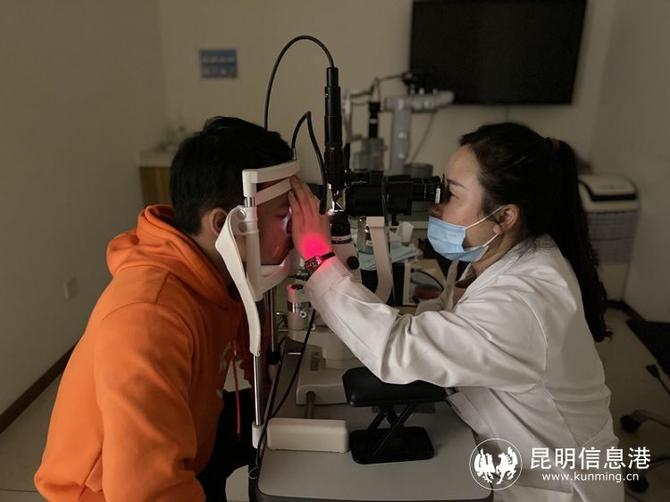 眼底病醫(yī)生莊靜使用裂隙燈為患者做檢查