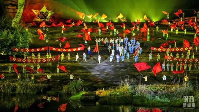 △江西吉安,大型實(shí)景演出《井岡山》在紅軍劇場上演。(圖/視覺中國)