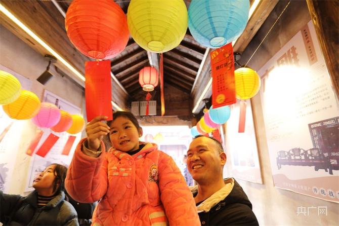 江西省上饒市廣豐區(qū)洋口鎮(zhèn)老街,一張張燈謎吸引著群眾駐足凝思(央廣網(wǎng)發(fā) 潘棟 攝)
