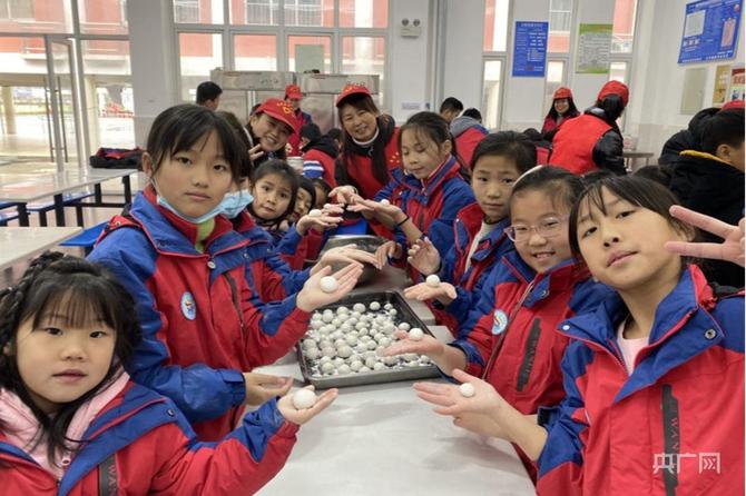 江西省南昌市灣里管理局第三小學(xué)的孩子們在志愿者老師的帶領(lǐng)下一起做湯圓(央廣網(wǎng)發(fā) 葉小萍 攝)