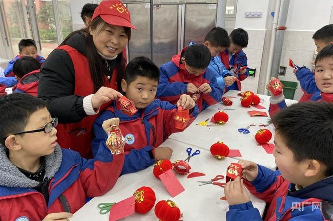 江西省南昌市灣里管理局第三小學(xué)的孩子們利用廢舊紅包制作環(huán)保花燈(央廣網(wǎng)發(fā) 葉小萍 攝)