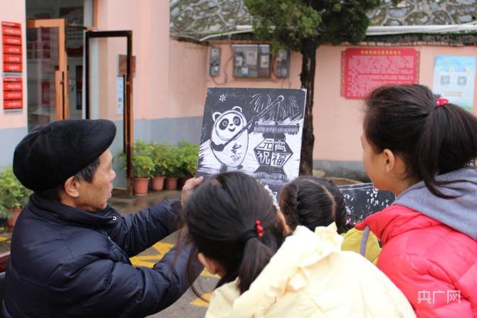 江西省宜春市袁州區(qū)版畫作家結(jié)合冬奧元素,制作了一幅“冰墩墩鬧元宵”版畫作品(央廣網(wǎng)發(fā) 黃玲 攝)