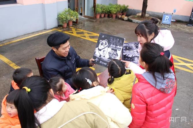 江西省上饒市廣豐區(qū)某幼兒園小朋友在老師的指導(dǎo)下做柚子燈、剪窗花(央廣網(wǎng)發(fā) 潘棟 攝)