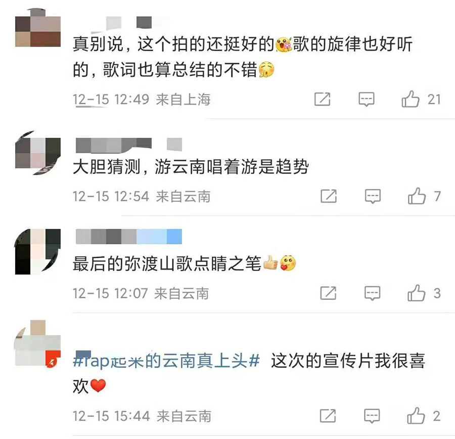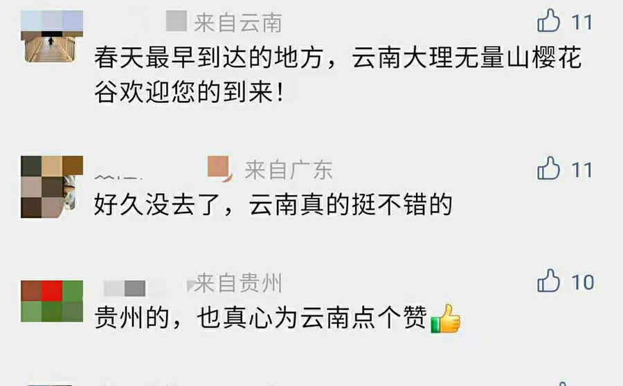 《七彩云南 世界花園》宣傳片發(fā)布后,在網(wǎng)絡(luò)上掀起了討論熱潮,交互式的傳播也吸引網(wǎng)友參與討論。不少網(wǎng)友自發(fā)成為MV“推薦官”,呼吁更多網(wǎng)友參與關(guān)注和轉(zhuǎn)發(fā)。