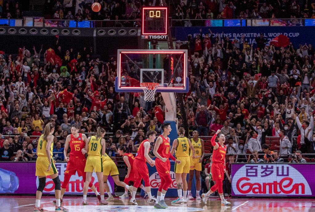 9月30日,在澳大利亞悉尼進(jìn)行的2022女籃世界杯半決賽中,中國隊以61:59戰(zhàn)勝東道主澳大利亞隊,晉級決賽。新華社發(fā)(胡涇辰攝)