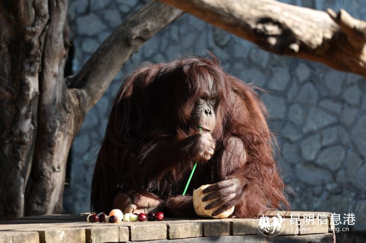 云南野生動(dòng)物園的紅毛猩猩“二毛”,是珍稀區(qū)一個(gè)開朗調(diào)皮的“小公主”?,F(xiàn)場,工作人員為它準(zhǔn)備了“椰子元宵”,提前在椰子頂部開了一個(gè)小孔,還貼心地放上了吸管,只見二毛拿起椰子就熟練地用吸管喝了起來。