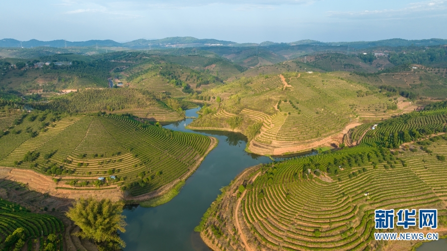 航拍鏡頭下大渡崗鄉(xiāng)萬畝茶園便利的交通(4月2日攝)。新華網(wǎng) 趙普凡 攝