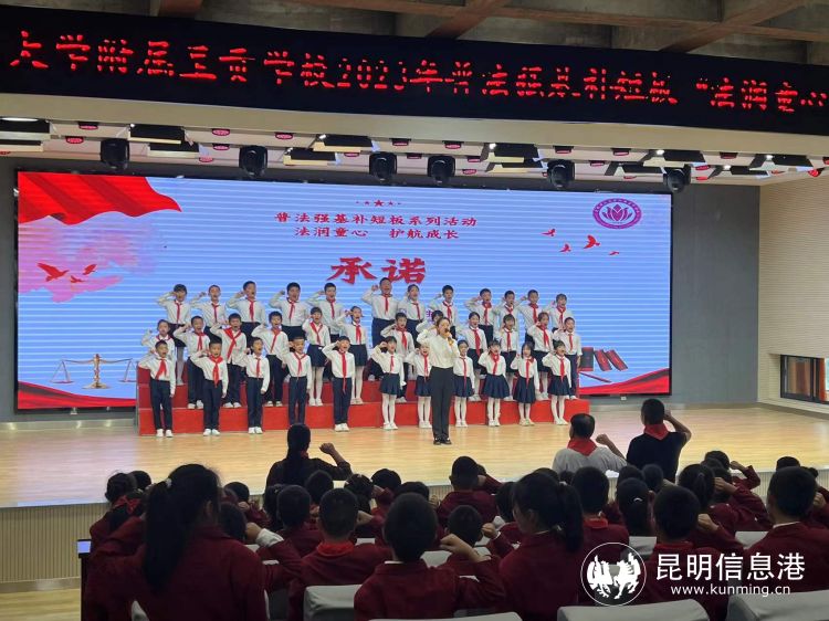 師生共筑信念,增強(qiáng)法治觀念。為進(jìn)一步使法律課堂+情景劇承上啟下、入腦入心,昆明理工大學(xué)附屬呈貢學(xué)校老師們以朗誦的形式,聲情并茂為大家禮贊法律,隨后教師代表帶領(lǐng)全體師生作出承諾,引導(dǎo)他們從小樹立法治觀念,養(yǎng)成自覺守法、遇事找法、解決問題靠法的思維習(xí)慣和行為方式,讓同學(xué)們充分認(rèn)識到法律與未成年人成長和保護(hù)的密切關(guān)系,加強(qiáng)“法治在身邊”的感受,活動(dòng)最后,在校園普法歌的愉悅氛圍中收獲了豐富實(shí)用的法律知識,推動(dòng)普法教育落地見效。