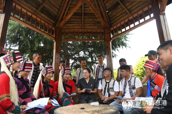 圭山鎮(zhèn)大糯黑村人口約1050余人,彝族群眾占比99%以上,村里有很多彝族老人不會(huì)說漢語。7月21日,石林縣人民法院法官、“阿詩瑪”調(diào)解室調(diào)解員一起來到石林縣圭山鎮(zhèn)大糯黑村進(jìn)行雙語普法,推動(dòng)普法強(qiáng)基走進(jìn)群眾身邊。有糾紛怎么通過合法途徑解決?人民調(diào)解有哪些流程?最近需要關(guān)注什么電信詐騙新手段?法官、調(diào)解員與村民圍坐在一起,用通俗易懂的話普及法律知識(shí),引導(dǎo)群眾自覺守法、遇事找法、解決問題靠法,讓矛盾糾紛至于萌芽。