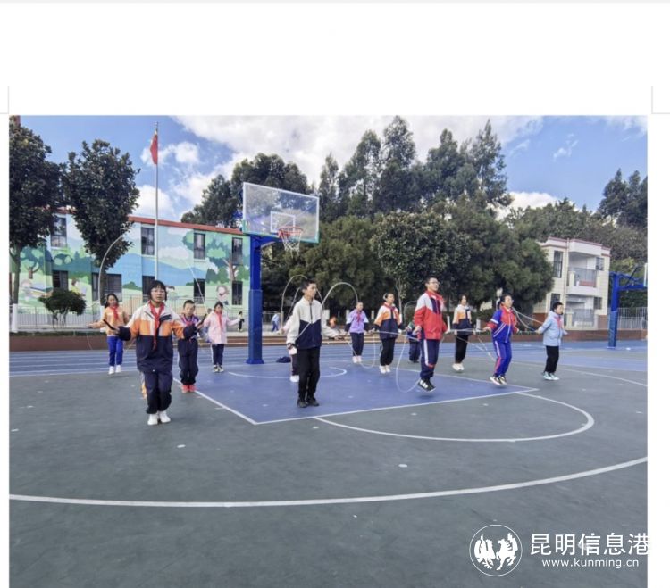 一根小小的繩子,連接的是快樂和活力;一根小小的繩子,連接的是勇氣和力量;一根小小的繩子,下課鈴聲響起,同學們拿好繩子來到操場上。和著音樂的節(jié)拍,學生們舞動著彩繩,練著武術,強身更強人生!他們歡快地跳躍,這已經成為學校一道靚麗的風景。