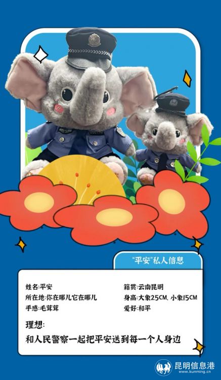昆明信息港訊 記者合宇聰 1月1日,云南省公安廳推出周邊毛絨公仔——大象“平安”。今后,公仔“平安”將和云南警方一起“象”你而來守護平安。