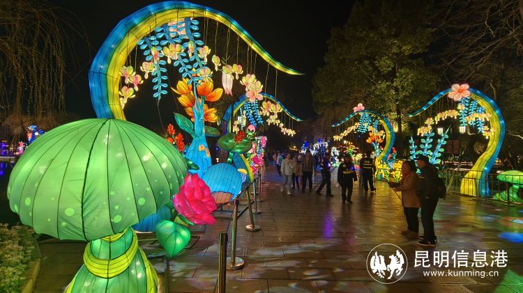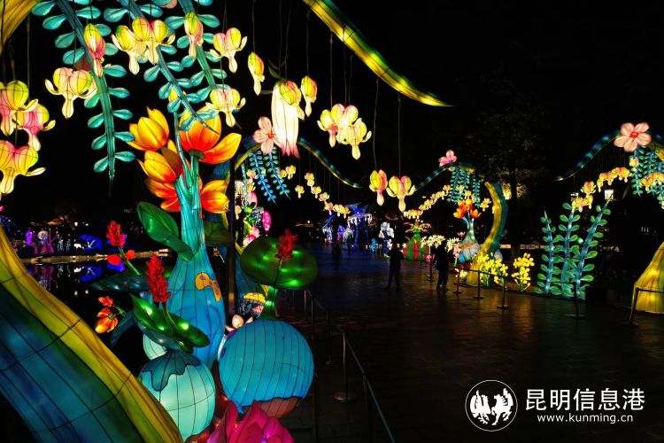 此次燈展共有31組不同主題的大型燈組及燈光呈現(xiàn),20米高的“睡美人仙子”、80米長(zhǎng)的燈光龍船等31組不同主題的燈組極具特色,扮靚了春城夜色。2月25日夜,伴隨著夜幕降臨,一盞盞充滿年味的花燈流光溢彩、似真似幻,開(kāi)啟一場(chǎng)充滿歡樂(lè)祥和的夜游賞燈之旅,市民和游客紛紛打卡拍照。