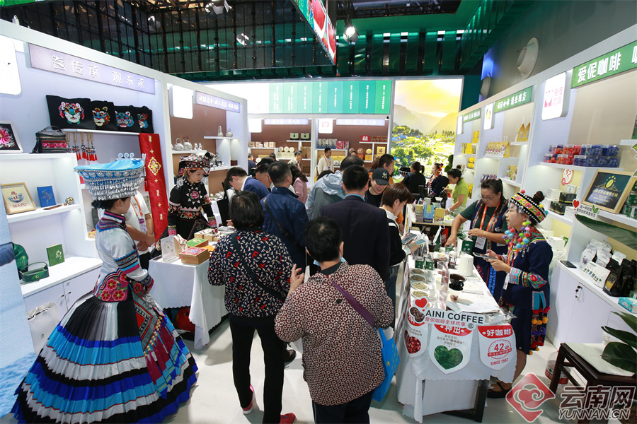 在云南展館咖啡展臺,展示出了10余款不同烘焙度、風(fēng)味多樣的系列烘焙咖啡產(chǎn)品和咖啡生豆產(chǎn)品。隨著咖啡機(jī)的啟動,果香、花香、蜜香,糖香、奶香……各種味道彌漫在展臺中,聞著咖香仿佛來到跨越北回歸線的普洱,格外心曠神怡。