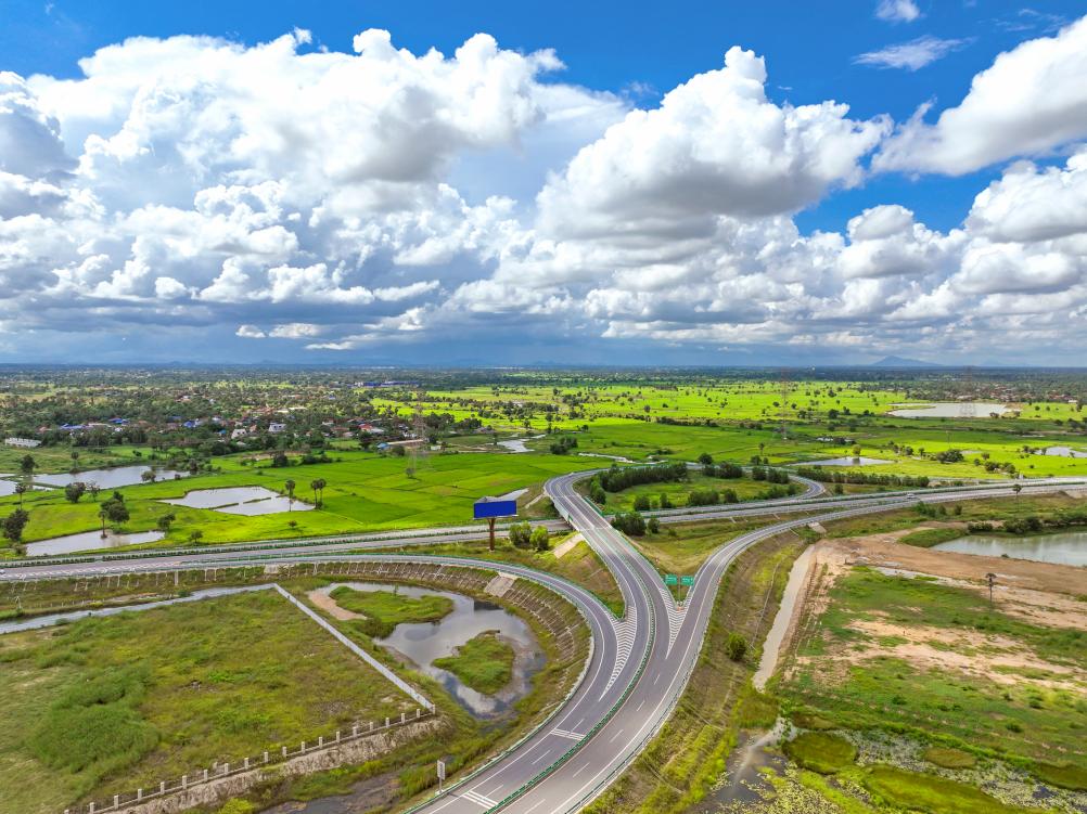 這是9月25日在柬埔寨磅士卑省拍攝的金港高速公路(無人機(jī)照片)。新華社發(fā)(柬埔寨金港高速公路有限公司供圖)