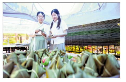 圖為社區(qū)居民參加包粽子活動(dòng)。