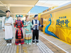 昆明信息港訊(昆明日報 首席記者廖興陽)11月25日,“彩云之南·昆明號”旅游專列(以下簡稱“昆明號”)試運行,在昆明—曲靖站區(qū)往返開行,為12月3日在昆舉行的首發(fā)儀式做準(zhǔn)備。這是繼“昆明陸港號”貨運班列后,昆明打造的又一絲路“流動名片”。