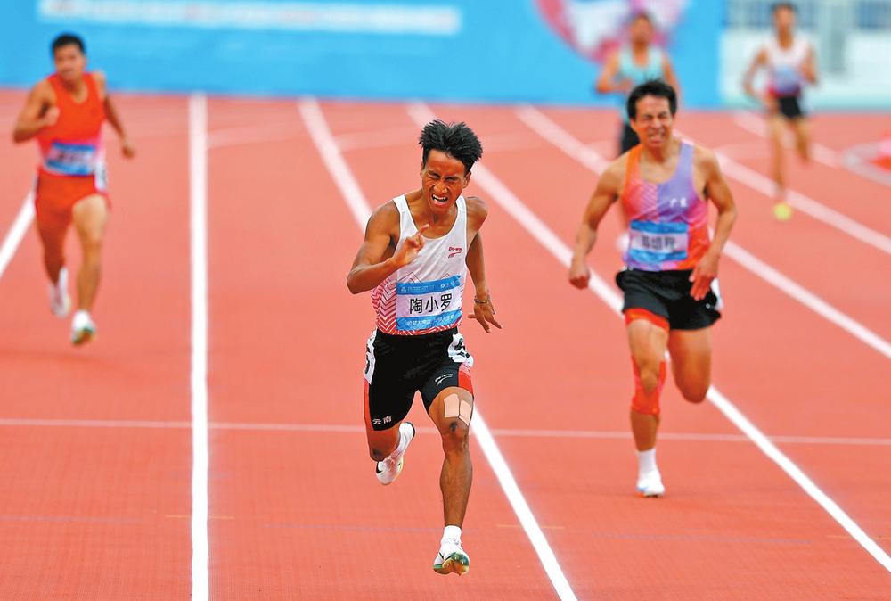 12月10日,男子200米T36級決賽中上演了驚險一幕——云南臨滄小將陶小羅在最后10米沖刺的時候,重心不穩(wěn)摔倒在地。“當(dāng)時就是太想去拼了,跑得太緊腿發(fā)軟,就摔倒了?!碧招×_迅速起身再次向終點沖去,完全沒有發(fā)現(xiàn)自己已經(jīng)受傷,最終他獲得了該項目第三名。