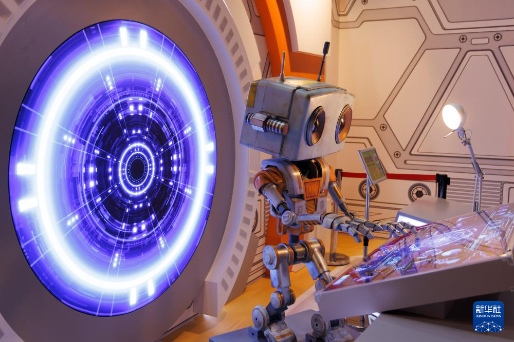 2025年6月28日在中國科學(xué)技術(shù)館《Project X:星際友好計劃》航天科幻擴展現(xiàn)實(XR)大空間體驗展拍攝的人工智能機器人星啟8號。新華社記者金立旺攝