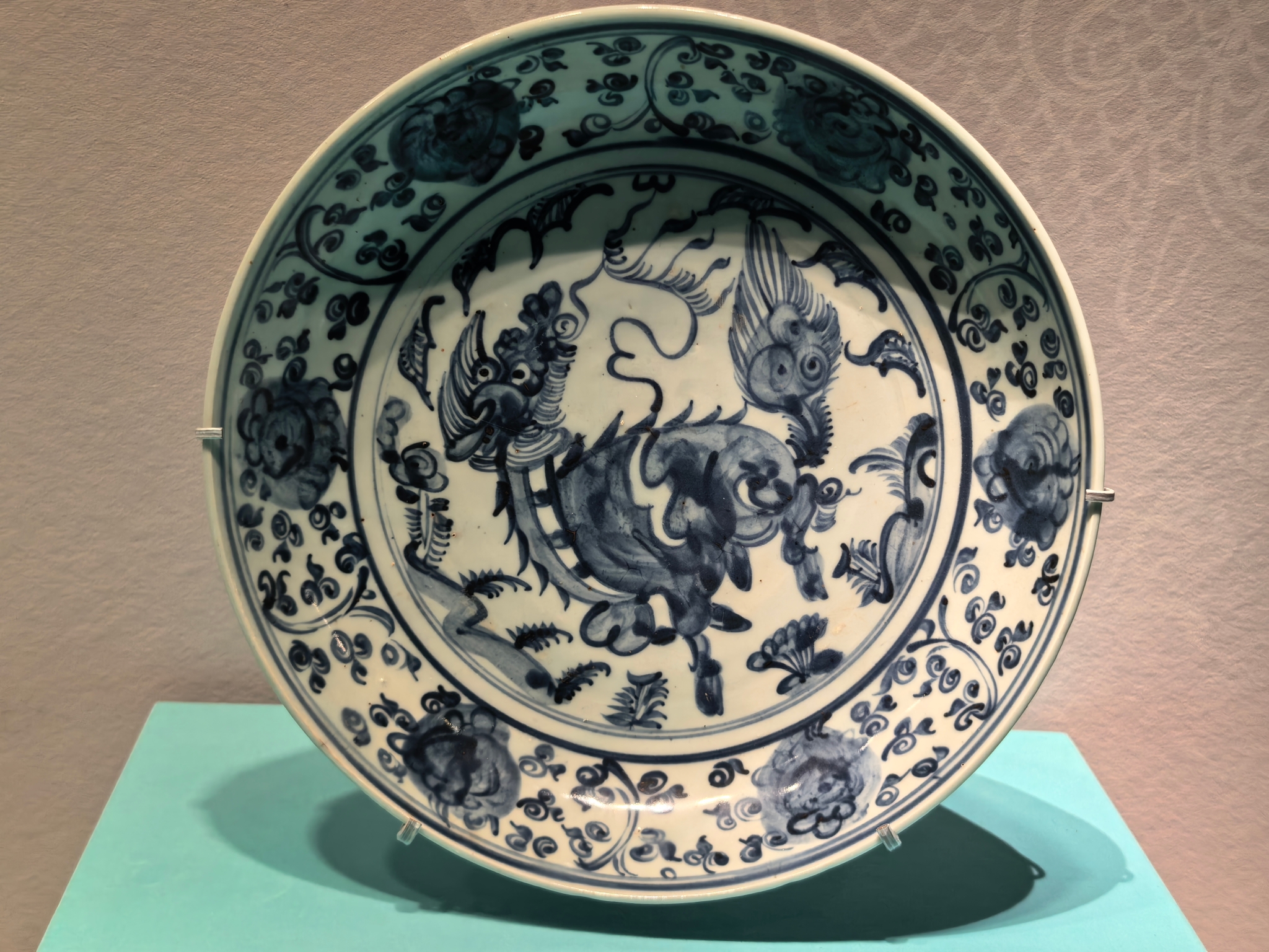 青花纏枝花卉麒麟紋盤