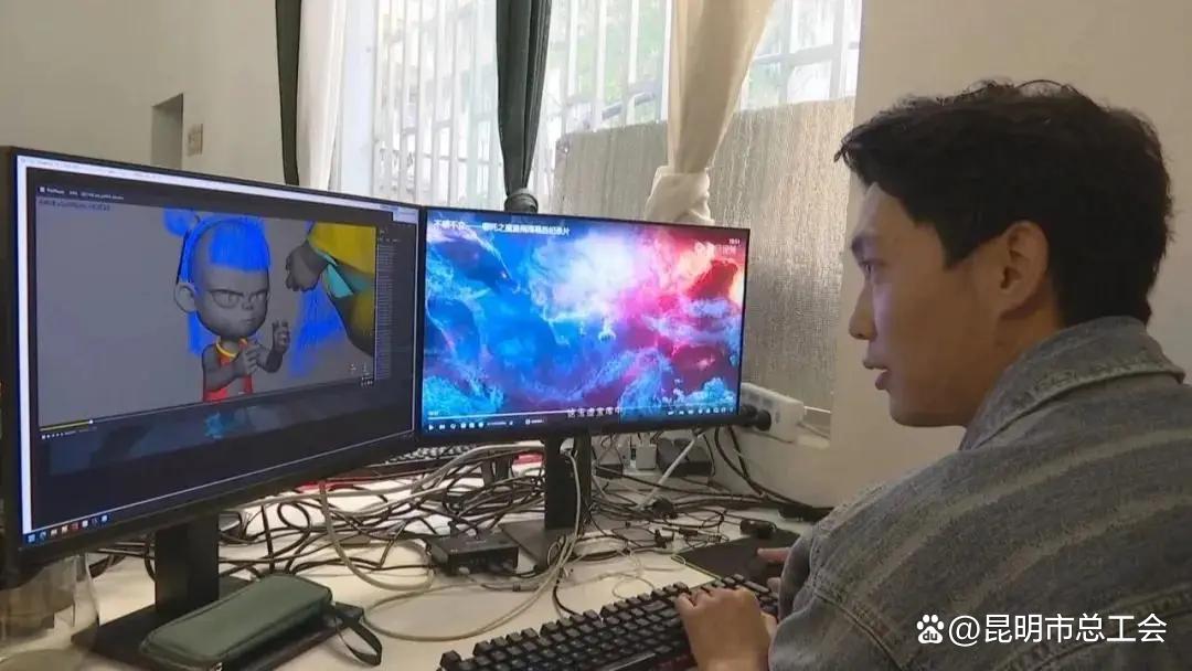金濤是昆明線立體文化有限公司的創(chuàng)始人和負責人,一名90后的特效師,追尋夢想在外奮斗,最終選擇回到家鄉(xiāng)云南。去年國產動畫電影《哪吒2》票房不斷刷新行業(yè)紀錄,作為云南本土唯一一家參與制作的公司,昆明線立體以20多個毛發(fā)布料特效鏡頭,贏得了市場認可。
