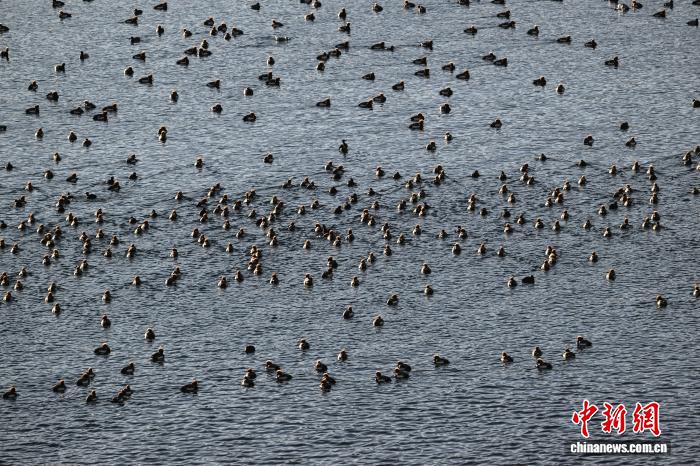 1月18日,成群的赤嘴潛鴨在沉錯(cuò)水域越冬。中新社記者 貢嘎來松 攝