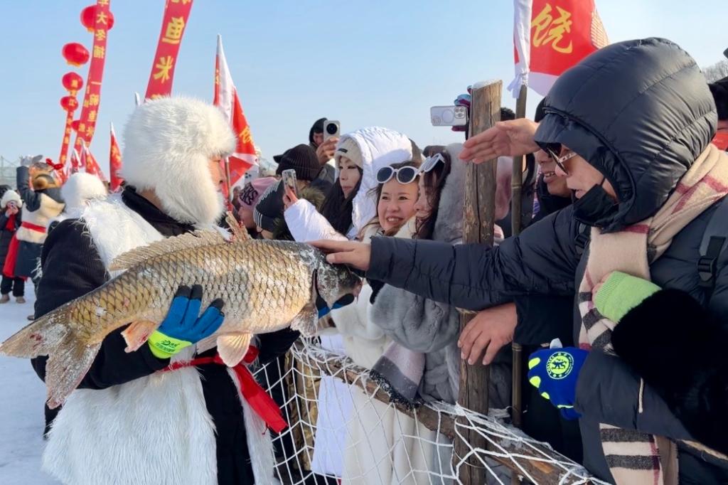 “這是我第一次參加冬捕節(jié),不但品嘗了美味的魚肉餡餃子,剛才還摸了摸魚頭,希望能沾沾喜氣。”杭州游客許巖靜笑著說,這份觸手可及的幸福,是節(jié)慶里最樸素的真意。