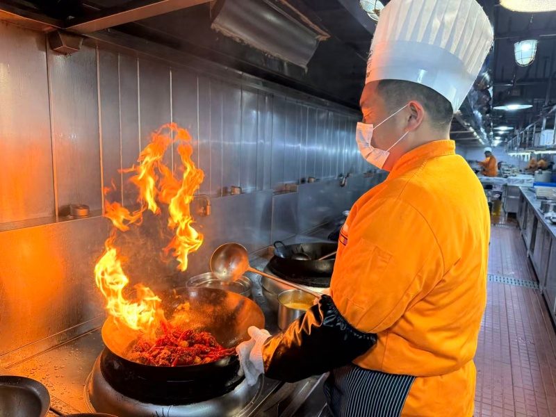 穩(wěn)定的蝦源不僅讓養(yǎng)殖戶增收,更讓餐飲企業(yè)底氣十足?!敖衲陥F(tuán)年宴主打龍蝦菜品。光除夕那天就預(yù)訂了一百多桌小龍蝦團(tuán)年宴,單是小龍蝦就備了一千多斤?!倍d華忙得不可開交。