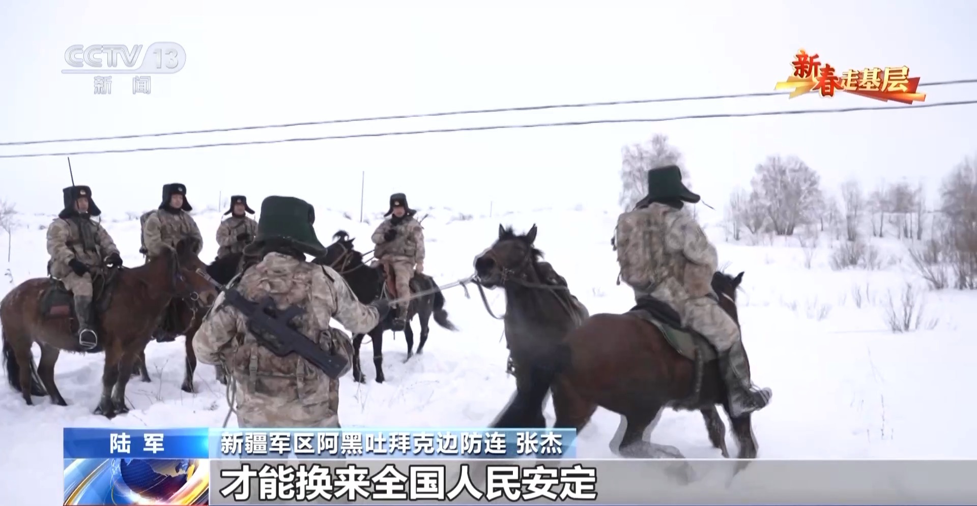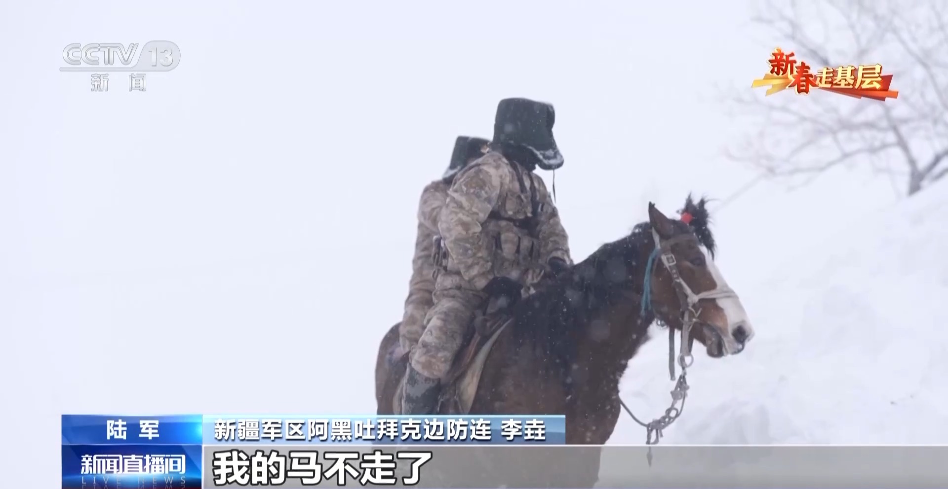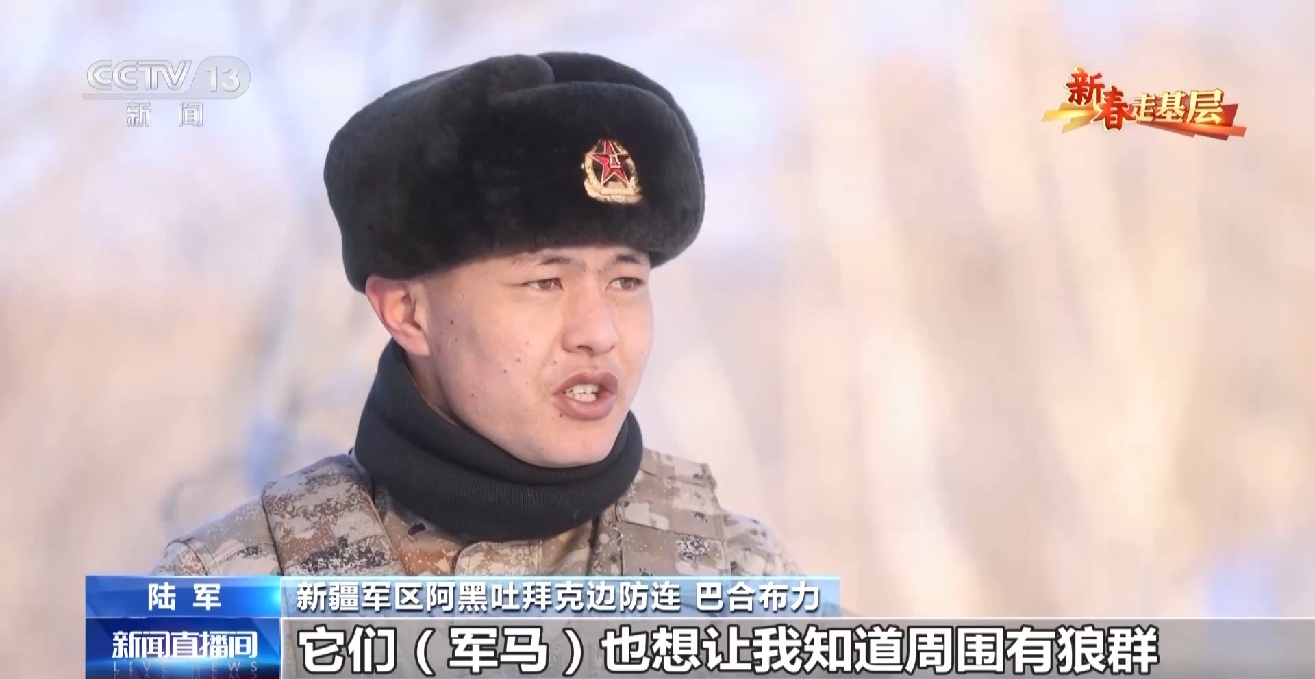新疆軍區(qū)阿黑吐拜克邊防連 巴合布力:春節(jié)戰(zhàn)備,我和我的馬都不能松懈,軍馬也是全天背著鞍子,隨時待命。在外人眼里,在邊防連就是騎馬、天天趕馬,但是我們自己覺得,我也在時時刻刻準備為國家犧牲,非常值得。