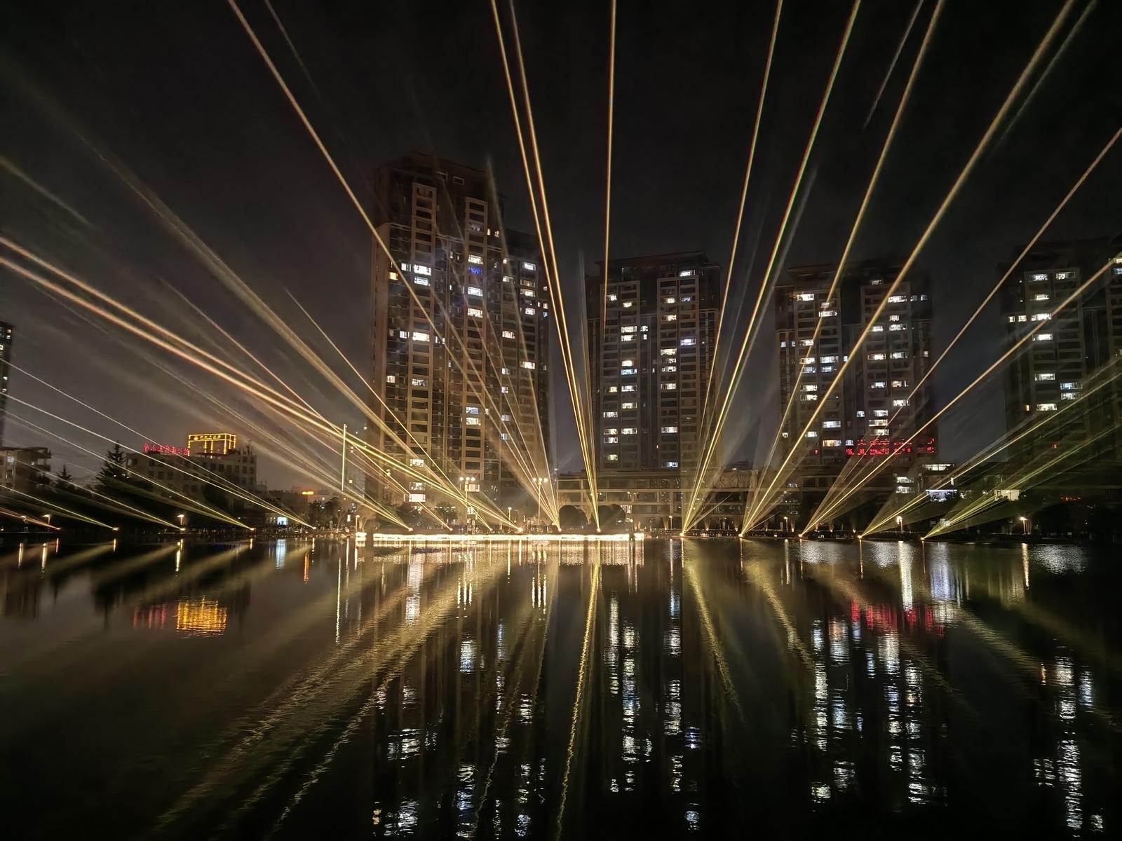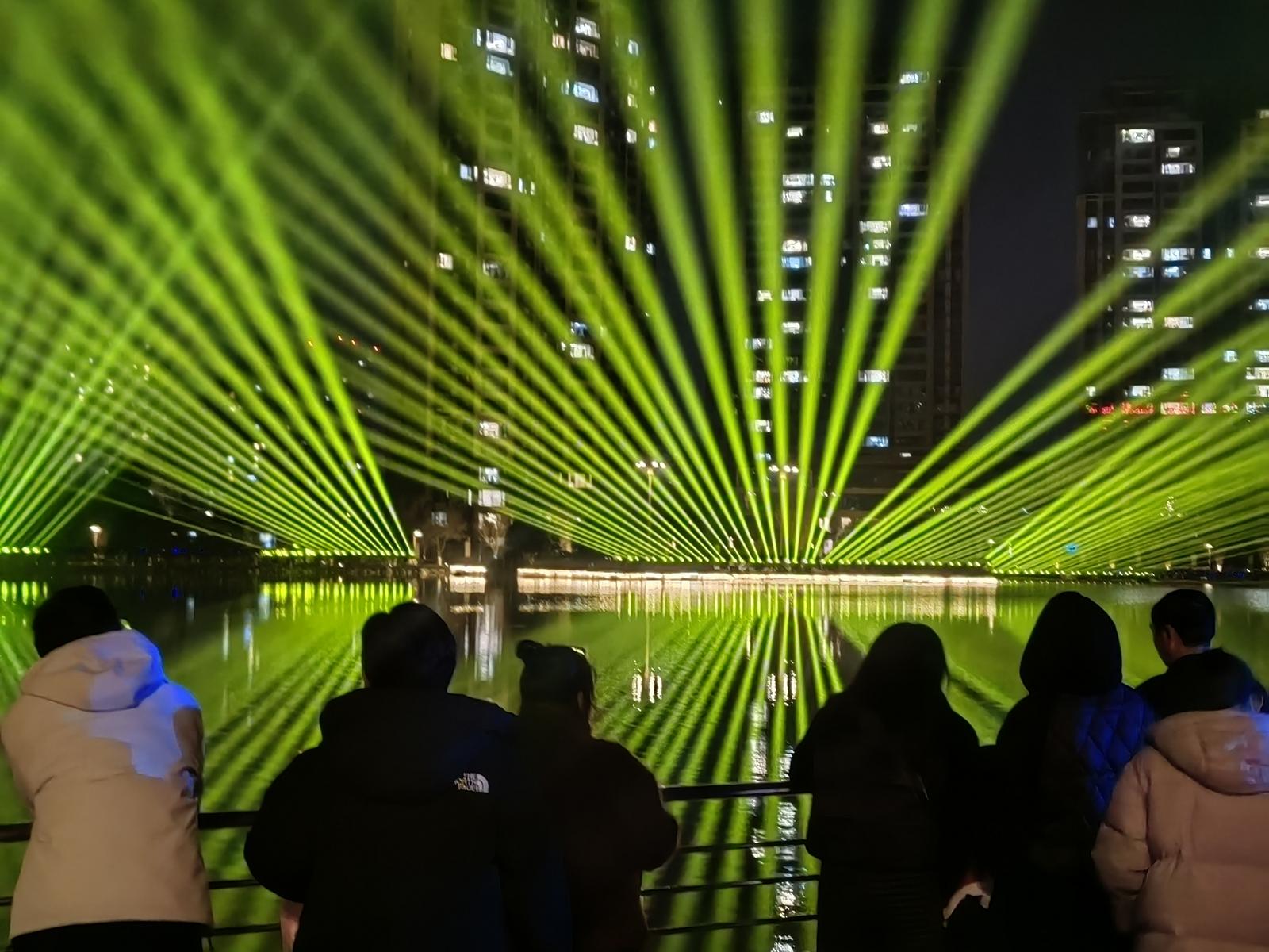 夜色漸濃,燈光秀開啟視覺盛宴。400臺光束燈與16臺激光燈劃破夜空,伴隨著古典與現(xiàn)代交融的音樂,變幻出五彩斑斕的光影圖案,將公園的水面、亭臺與夜空裝點得如夢如幻。光影流轉間,濃濃的“馬年”元素與新春祝福交織其中,引得現(xiàn)場市民陣陣驚嘆。